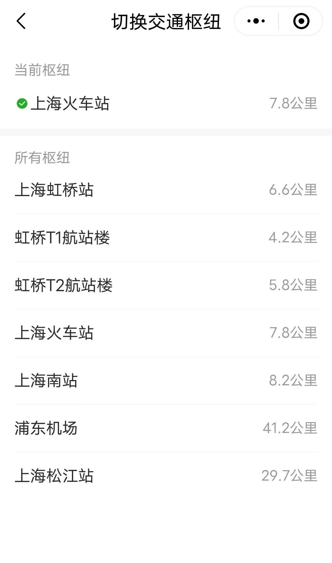 点击页面左上角的菜单,还可以在上海各个主要交通枢纽之间进行切换哦!