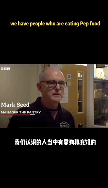 BBC节目中,某采访遗憾地报道,有人开始靠狗粮充饥,用暖气和蜡烛加热食物。