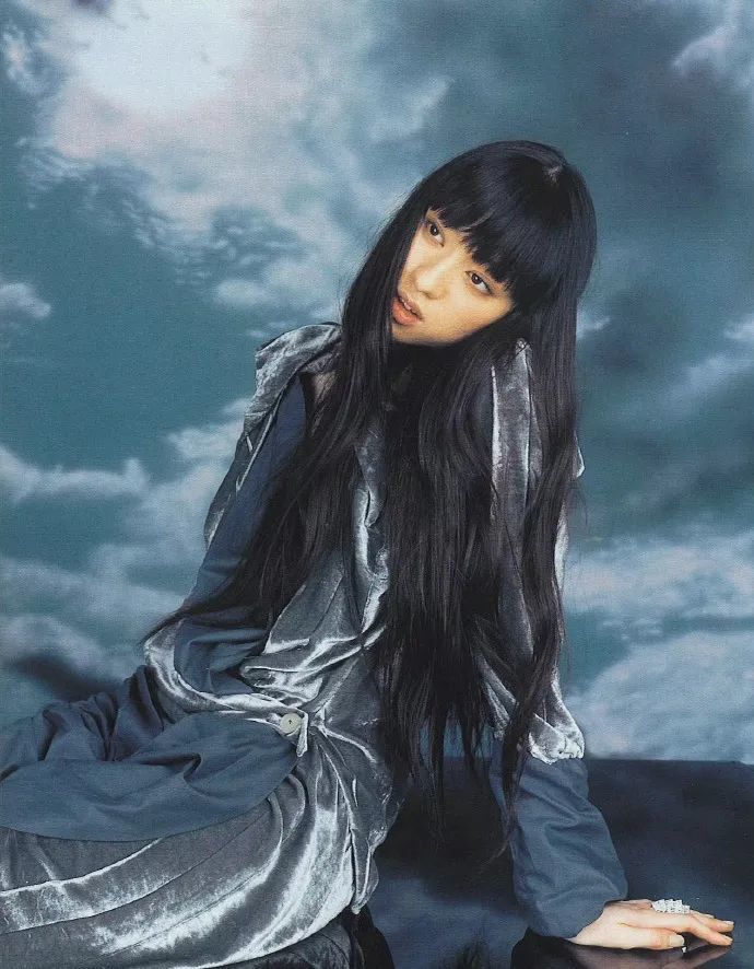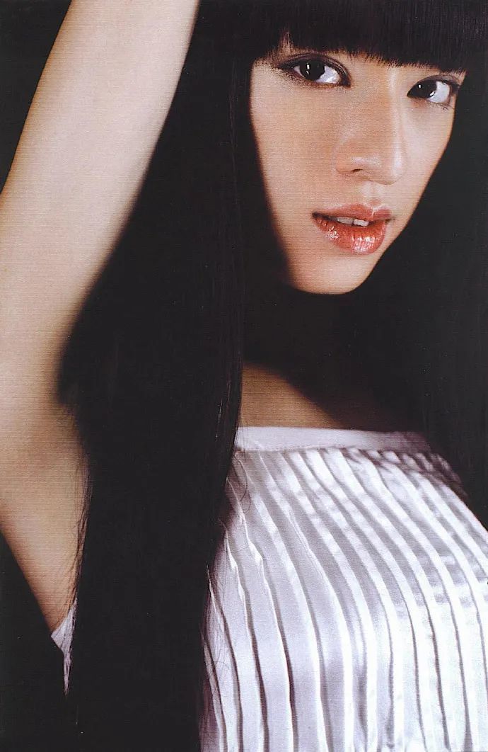 标志性的齐刘海,搭配黑瀑般的长直发。