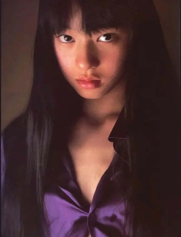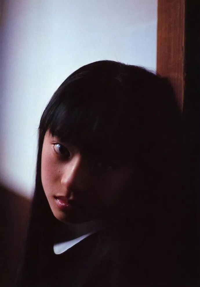 第一,栗山千明的下颌线非常刚硬,用黑长直发可以很好地修饰自己的脸型。