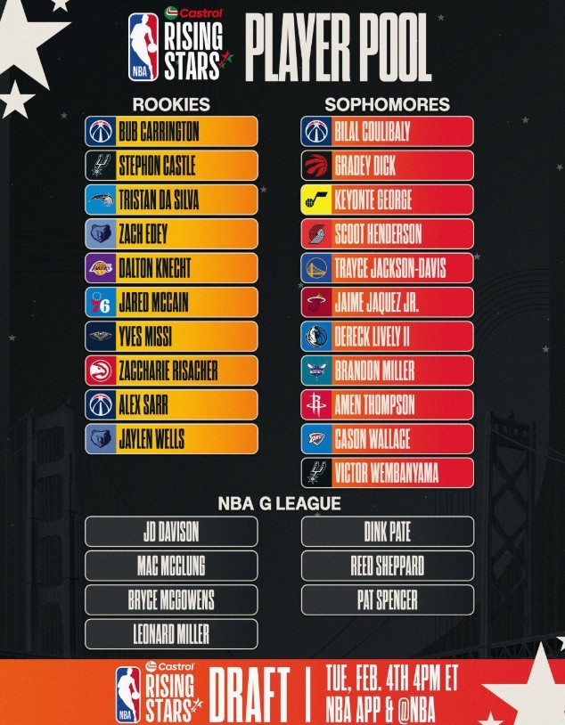 本届全明星新秀挑战赛将会在勇士主场大通中心于2月15日展开。