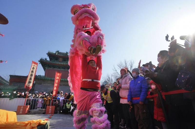 南拳和北腿、南腔和北调……乙巳蛇年第一天,北京东岳庙庙会热闹开启。七支南北舞狮队伍在东岳庙门前广场和西路广场热闹舞动,在春节期间为市民游客连续呈现南北舞狮的看家本领。