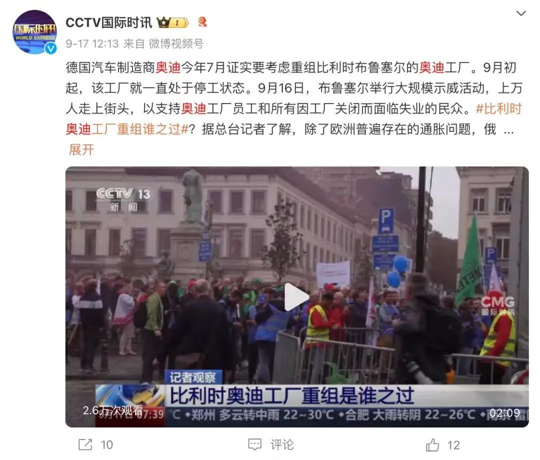 实际上,早在2024年7月,奥迪方面就表示,因销量低迷不排除关闭布鲁塞尔工厂的可能性。另据央视报道,布鲁塞尔工厂从2024年9月初开始已处于停工状态,奥迪计划对布鲁塞尔工厂进行重组,此举引发工人们多次举行示威活动,要求奥迪明确工厂和员工未来的前景。在此之前,奥迪董事会成员兼生产主管Gerd Walker说道:“关闭奥迪布鲁塞尔工厂是我职业生涯中做出的最艰难的决定。”