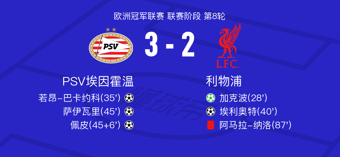 北京时间1月30日PSV埃因霍温vs利物浦,佩皮得到全场最高的7.9分,阿马拉-纳洛得到全场最低的5.3分