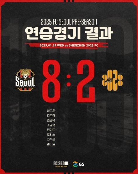 根据首尔队官方的报道,球队在训练赛中以8-2的比分战胜中乙新军深圳二零二八,林加德梅开二度。