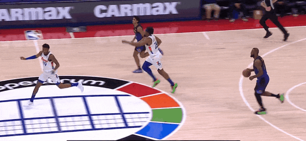 浓眉在场,不只是每场能给湖人稳稳的25分,还能惩罚对方的扩防。浓眉下场,湖人只能提速,费城大肆扩防切割湖人的守转攻。第二节克里斯蒂,第三节勒布朗,都有过守转攻试图提速,被费城切掉,就地打反击。