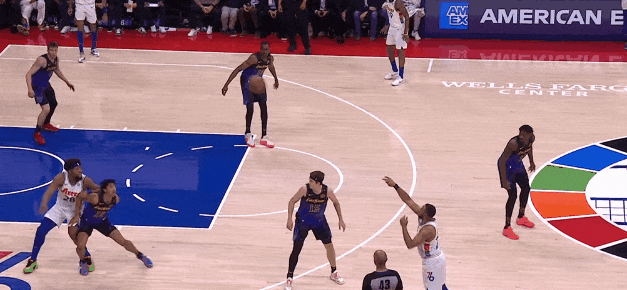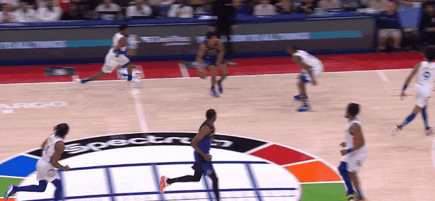 这是费城后半程的可怕之处:借湖人的失误,跑起来打了。