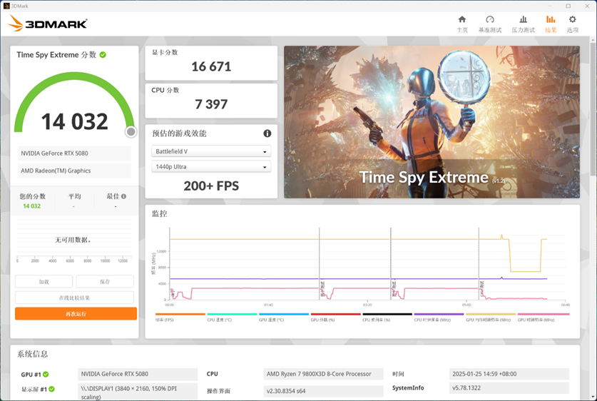 在测试DX12性能的Time Spy Extreme中,iGame RTX 5080 Advanced OC显卡得分16671。