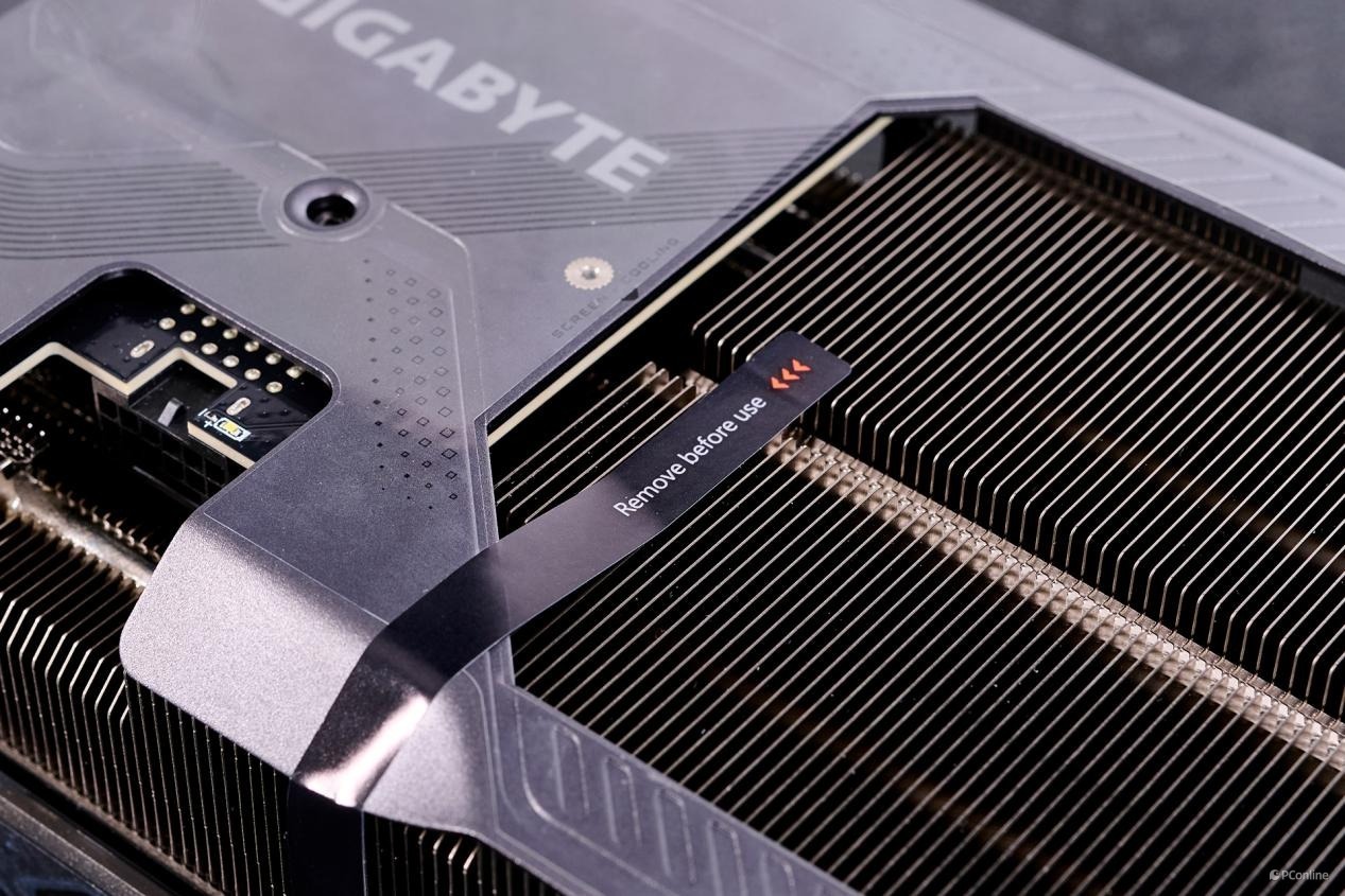 在使用技嘉RTX 5080魔鹰显卡之前,务必撕掉其保护封条以及背部金属部分的透明保护膜。