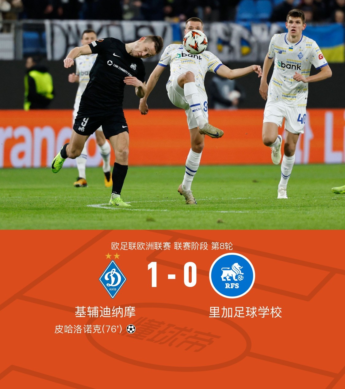 在欧足联欧洲联赛的较量中,基辅迪纳摩迎战里加足球学校。比赛中,基辅迪纳摩的皮哈洛诺克成功攻入一球,为球队取得领先。最终,基辅迪纳摩以1比0战胜里加足球学校,取得了比赛的胜利。