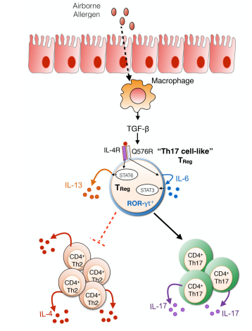 当IL-6存在于炎症部位,如黏膜炎症部位时,它可以通过酪氨酸导致下游STAT3的磷酸化,p-STAT3的高活性可增加T细胞中转录因子RORgt的表达,进而降低Foxp3的表达,从而导致CD4+ T细胞分化为Th17细胞,而不是treg细胞。