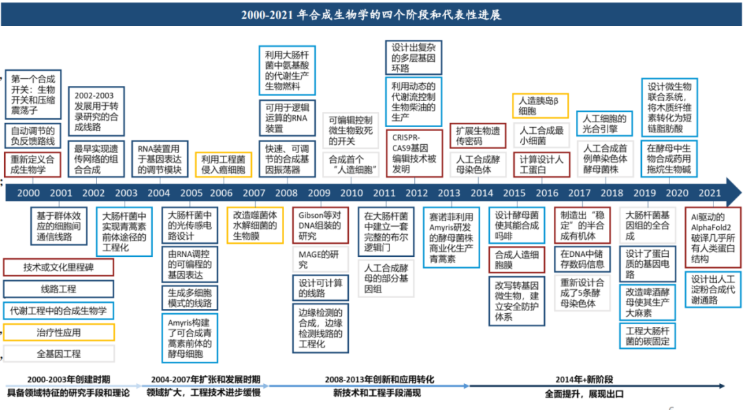 合成生物学真正被广泛关注始于21世纪初,一系列颠覆性成果在这个阶段陆续发布。