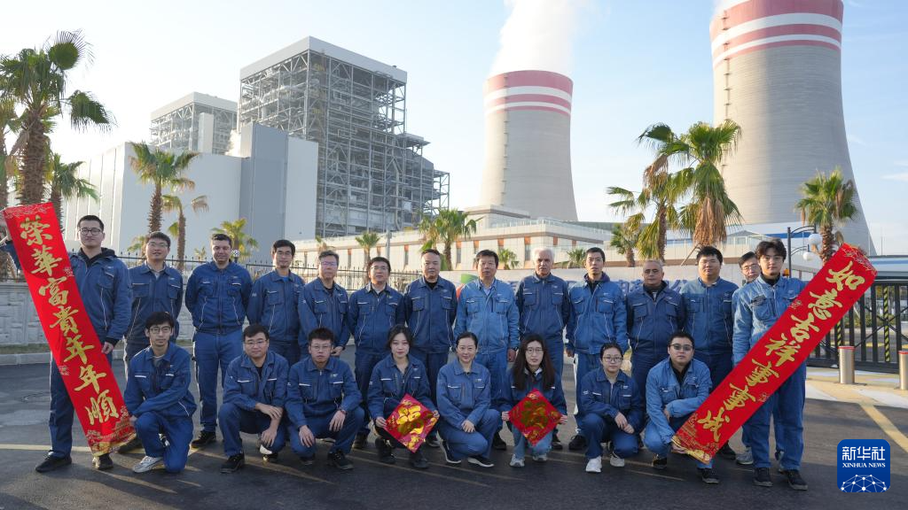 1月28日,在土耳其胡努特鲁电厂,中外员工一起迎接中国新年。