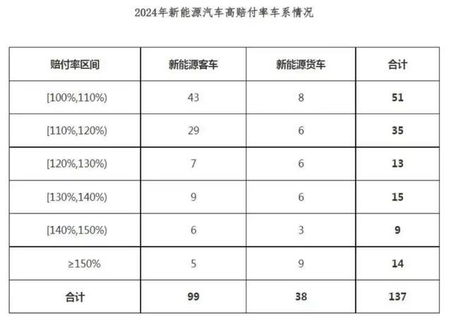 1月24日,中国精算师协会(以下简称“精算师协会”)和中国银行保险信息技术股份有限公司(以下简称“中国银保信”)联合发布的新能源车险赔付信息显示,2024年,新能源车险承保亏损57亿元,共承保车系2795个,赔付率超过100%的高赔付率车系有137个。