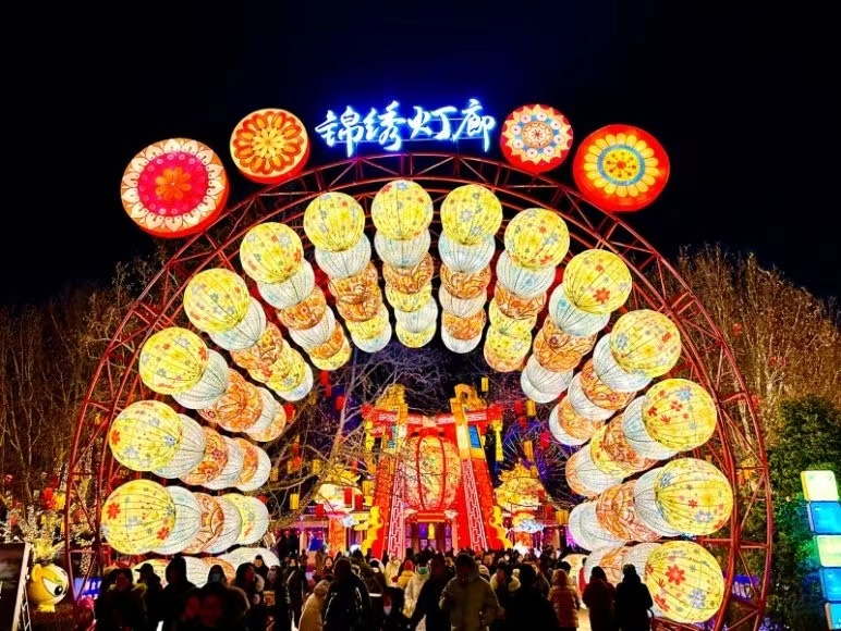 当夜幕降临,新春“灯火游园会”为庙会开启了另一番奇幻景象。巨型锦绣灯廊、灵蛇献瑞、如愿神灯等景观装饰震撼亮相,五彩斑斓的灯光在夜色中闪烁,吸引着游客们纷纷拍照留念。随着冰火光舞秀音乐响起,异域风情的舞蹈与中国传统的国潮醒狮、非遗火龙钢花相互交织,呈现出一场绚丽多彩的视觉盛宴。漫步在园区,仿佛置身于一个梦幻的童话世界,让人陶醉其中。