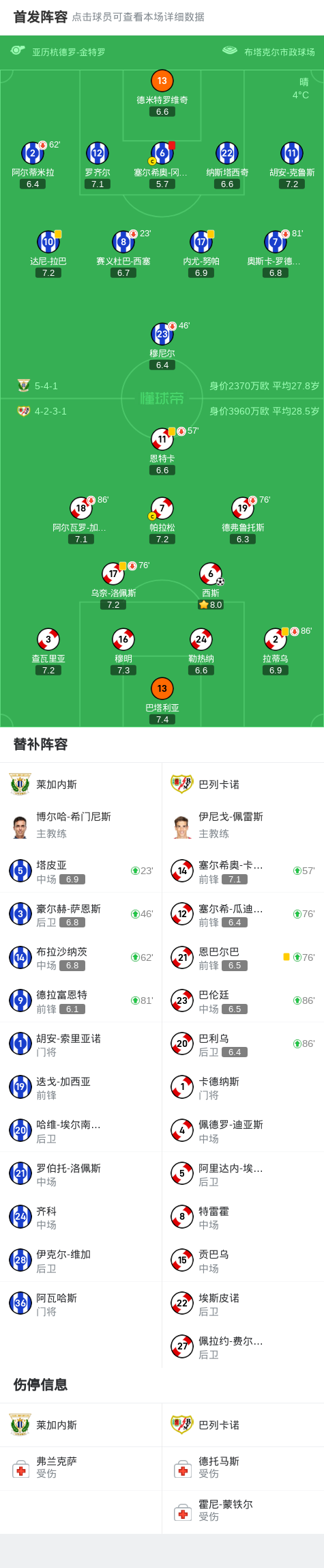 在西班牙足球甲级联赛第22轮的较量中,莱加内斯坐镇主场迎战巴列卡诺。比赛中,莱加内斯的塞尔希奥-冈萨雷斯被罚出场,给球队带来了不小的压力。巴列卡诺的西斯抓住机会,为球队打入关键一球,帮助巴列卡诺取得领先。比赛接近尾声时,莱加内斯的德拉富恩特错失了扳平比分的点球机会。最终,巴列卡诺以1比0小胜莱加内斯,成功带走三分。