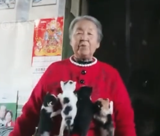视频的主角是一个老奶奶,还有奶奶喂养的几只猫。