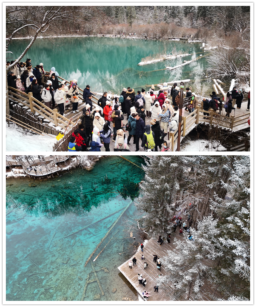 九寨沟景区则在1月30日至2月1日连续3天达到淡季最大承载量2.3万人次。