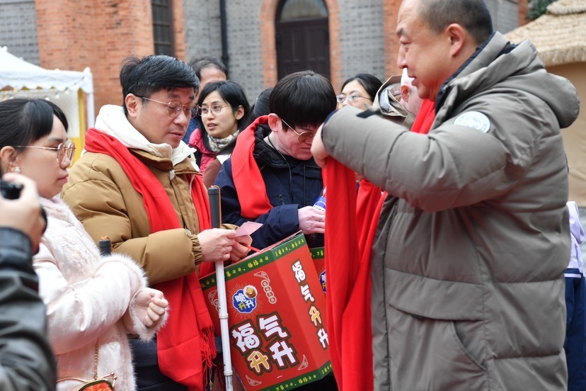 在外滩源新年集市重新开市首日,33位残障人士逛集市、领年货。这一举措不仅让他们感受到了社会的关爱与温暖,也提供了一个走出家门、融入社会的宝贵机会。