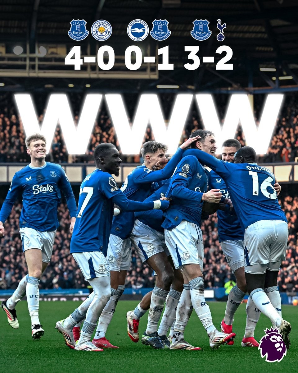 北京时间2月2日,在英超第24轮的比赛中,埃弗顿依靠贝托的梅开二度以及阿卜杜拉耶-杜库雷和恩迪亚耶的进球主场4-0大胜莱斯特城,成功拿下联赛3连胜,排名升至积分榜的第15位。