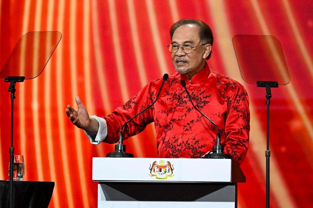1月25日,在马来西亚吉隆坡,马来西亚总理安瓦尔出席活动并致辞。2025年“欢乐春节”全球启动仪式暨“欢乐春节 五洲同欢”演出25日晚在马来西亚吉隆坡举行。新华社记者程一恒摄