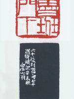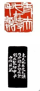 一:印章“老夫也在皮毛类”。边款:“老夫也在皮毛类,乃大涤子句也。余假之制印。甲子,白石并记。”此印刻于1924年,齐白石在二十年代中晚期到三十年代,其画作上多处盖有此印。
