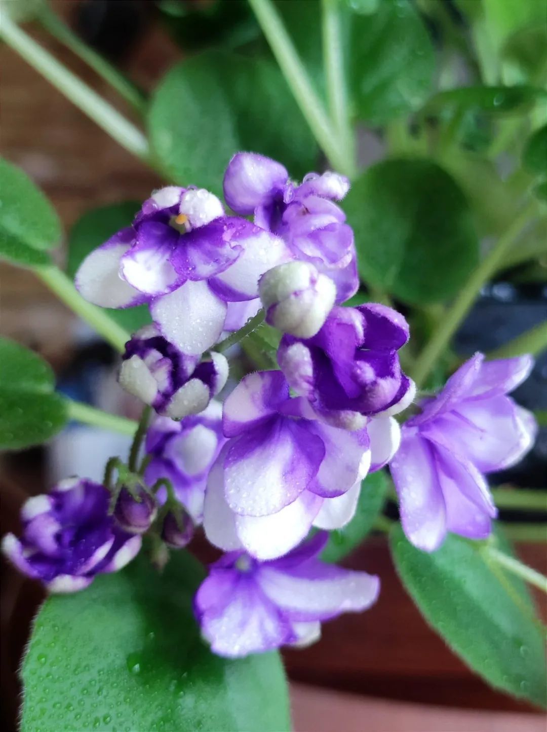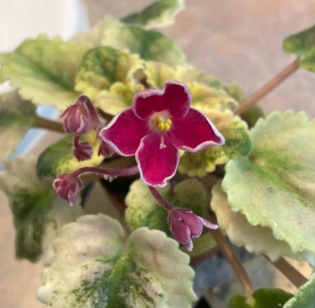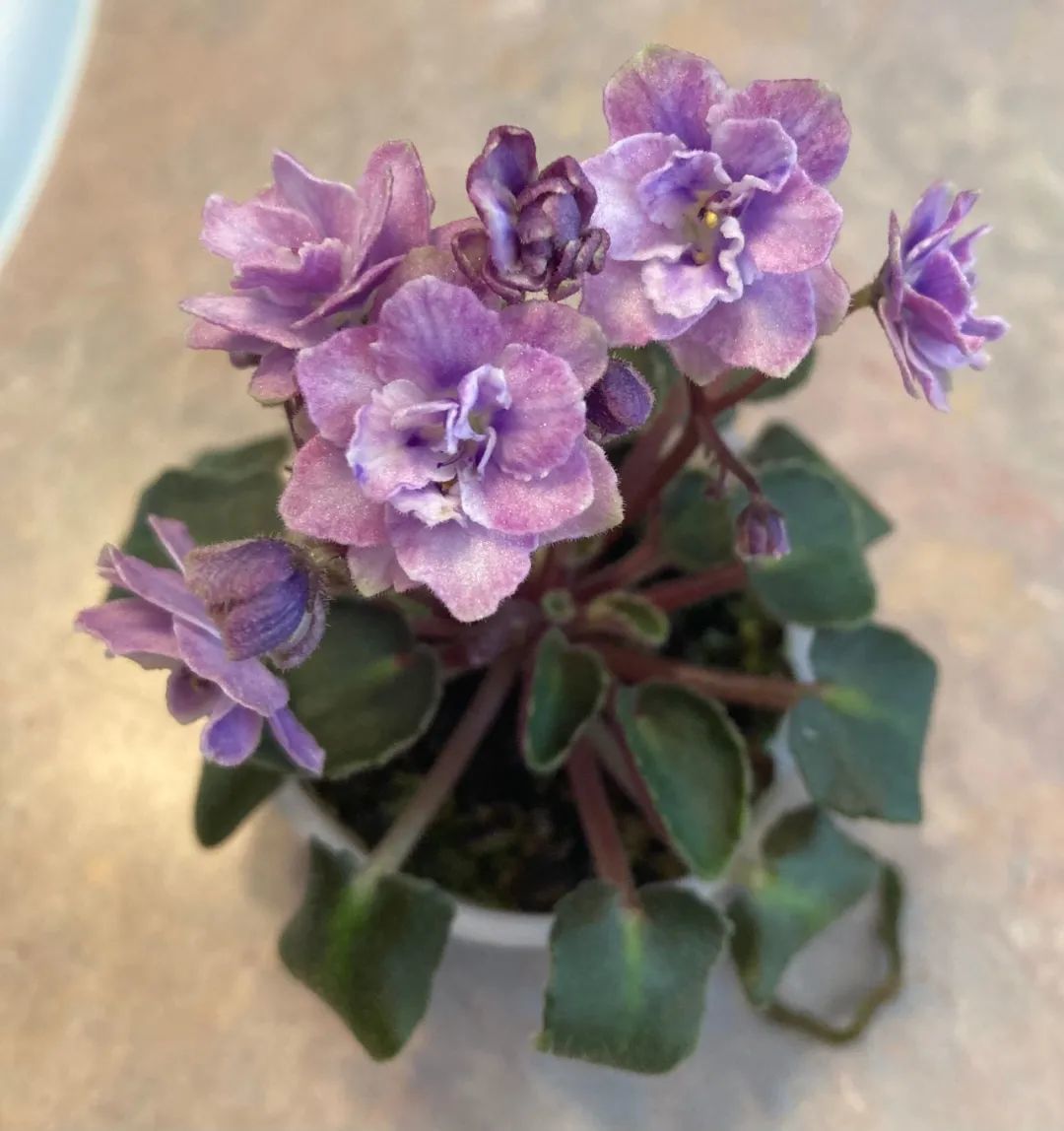 非洲紫罗兰养在室内窗台或阳台上就能正常开花,是比较耐阴的开花植物,是非常经典的苦苣苔科植物,对光照需求比较少,只要有一两小时散射光也能正常开花,特别受欢迎。
