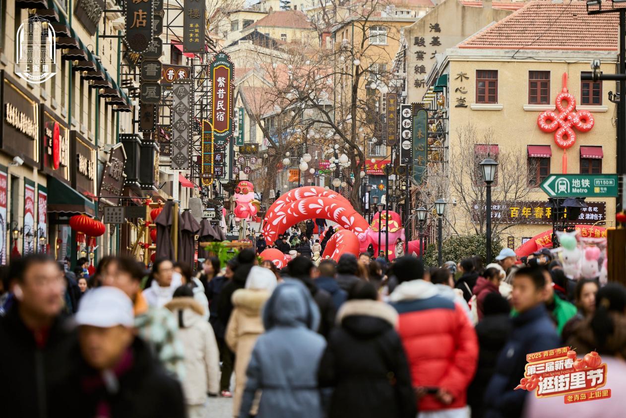 春节假期期间,市南区在中山路历史街区推出第三届新春逛街里节系列促消费主题活动。本次活动以“蛇舞新春乐大年”,打造以“文化展览”“商业体验”“舞台表演”“民俗巡游”“喜剧演艺”“市集活动”为主要内容的六大板块。通过上演《年味儿》新春大戏,打造潮趣文创快闪,举办复古街区新春市集和精彩演出等活动,彰显上街里冬季独特魅力和热闹的节日场景。