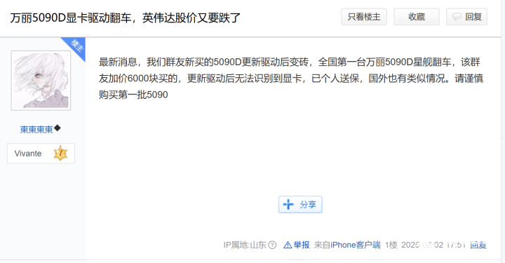 英伟达于1月30日正式开售其新一代旗舰显卡GeForce RTX 5090及中国特供版RTX 5090 D。但目前上市仅数日,就出现了多起国内外玩家报告的“变砖”事件,在安装最新驱动之后出现黑屏、系统无法识别问题,涉及七彩虹、万丽、技嘉等多个品牌。