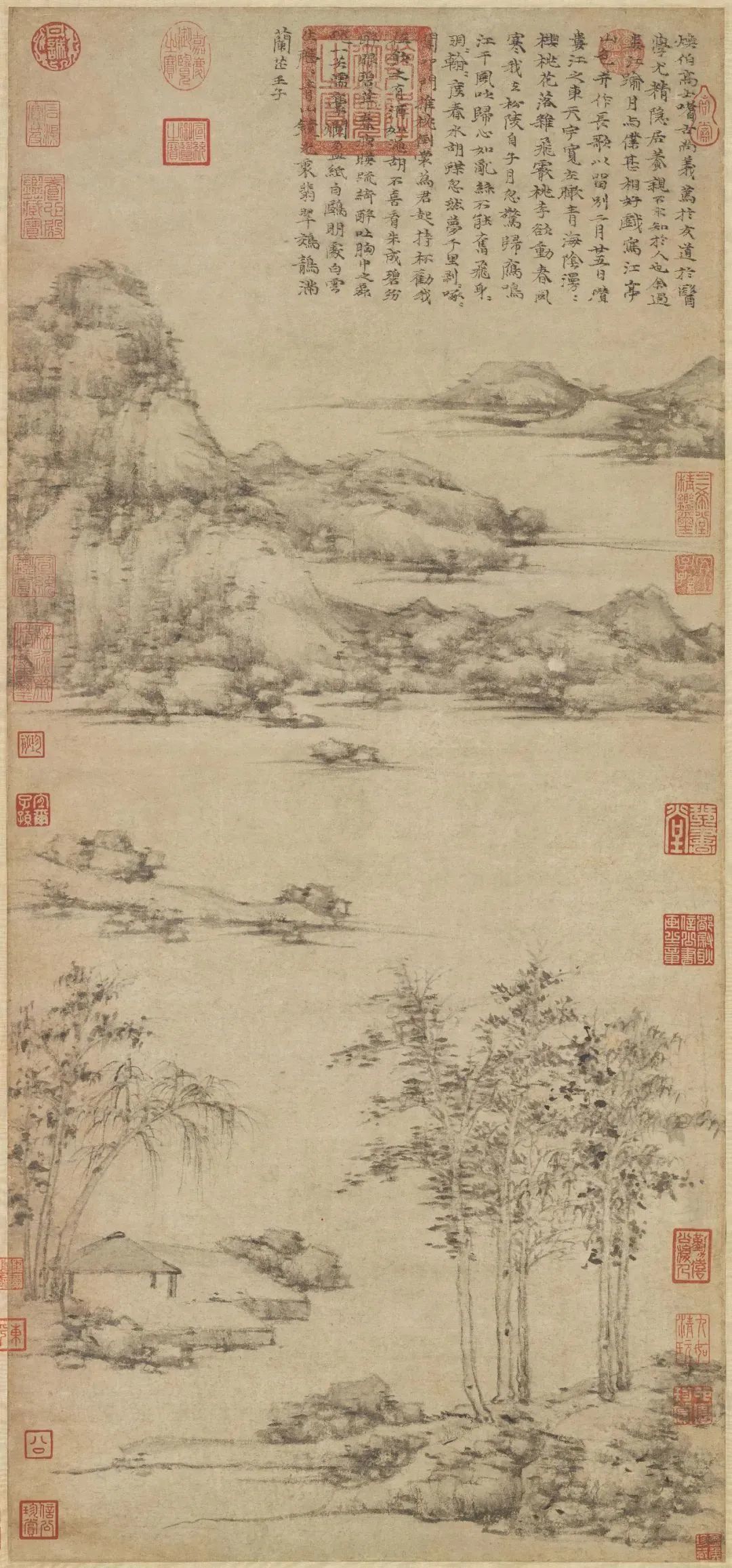 倪瓒善于通过山水元素的表现来诠释禅宗的理念。他将山水融入自己的心灵体验中,通过笔墨的表现力和画面的构图来传达内心的感悟。观者在欣赏作品时,也会被这种禅意所感染,与作者产生一种默契和共鸣。倪瓒的作品不仅是艺术作品,更是一种精神和情感的交流途径,能够引导观者超越形式,进入到内心深处,感受到自然之美和心灵的安宁。