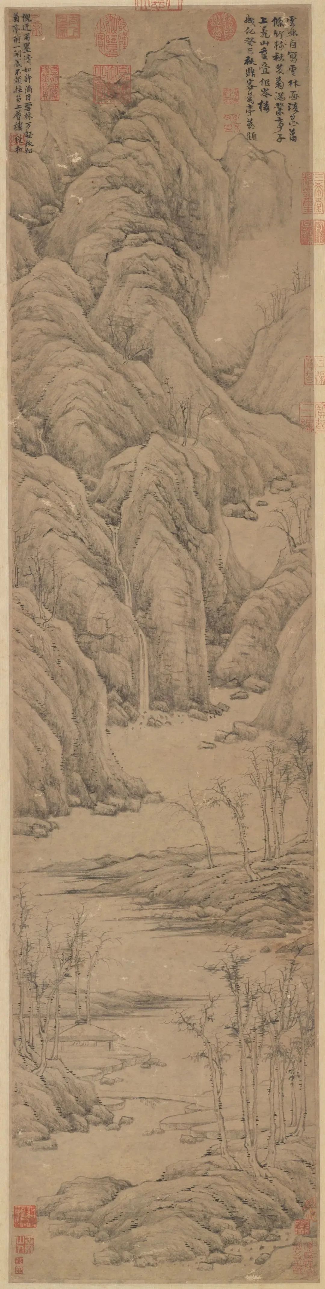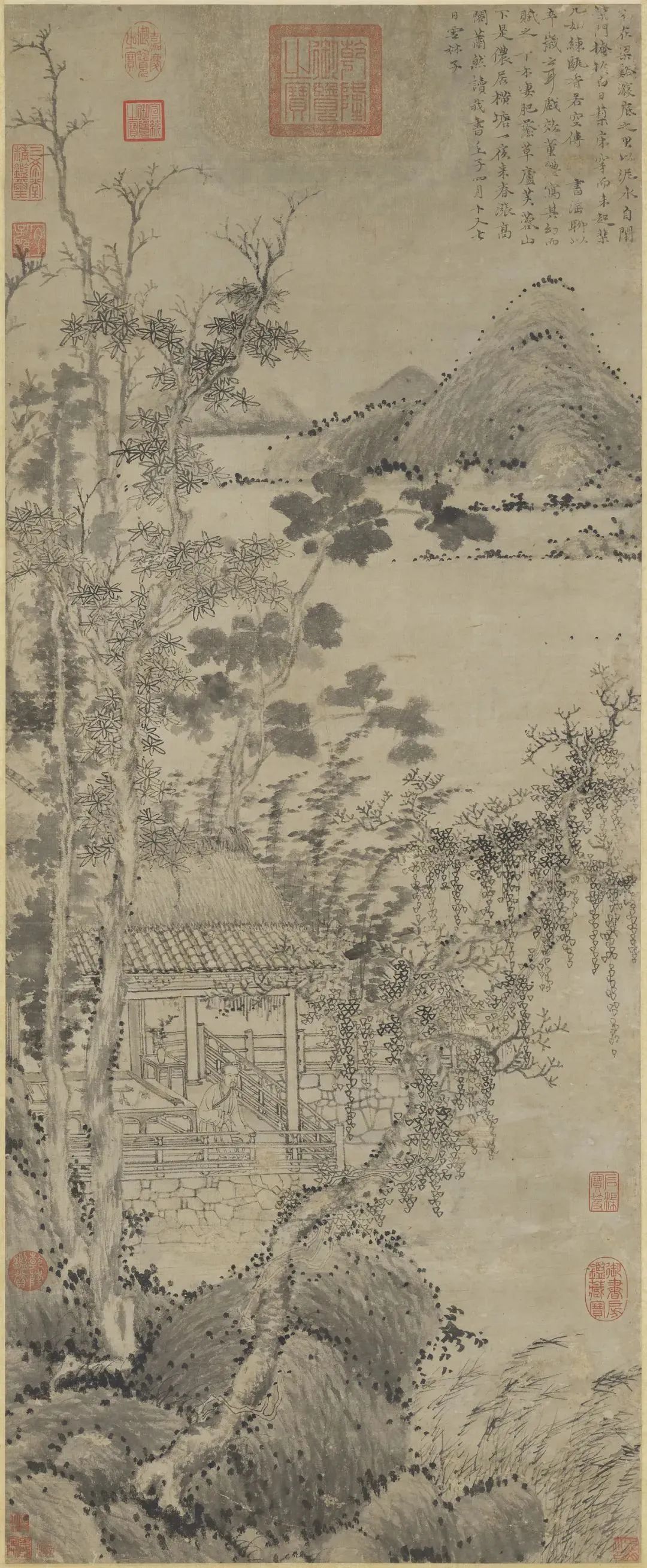 倪瓒晚年的山水画作品中,墨色的浓淡变化和纹理效果是他审美追求的重要方面。禅宗美学注重墨色的表现力和纹理的质感,倪瓒通过运用墨色的层次和纹理的效果,赋予作品以丰富的视觉体验和情感内涵。