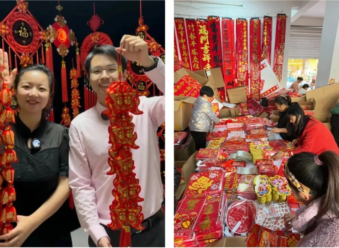最初,他们在朋友的工厂进了一批文具,练习拍品、运营等,到了10月,他们开始独立选货,主攻年货产品,如春联、窗花、福字等。
