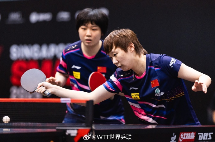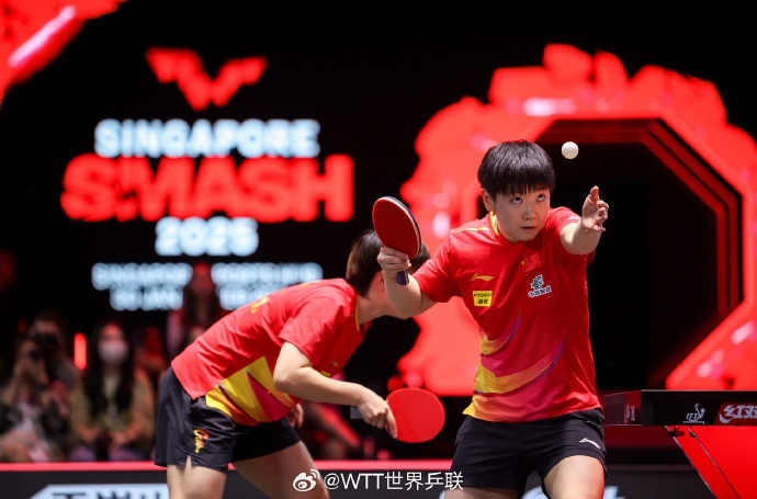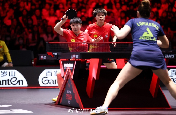 北京时间2月5日,WTT新加坡大满贯女双1/8决赛,孙颖莎/王艺迪3-0战胜塞尔维亚组合卢普雷斯库/苏尔詹,晋级女双八强,比分:11-7,11-8,11-3。