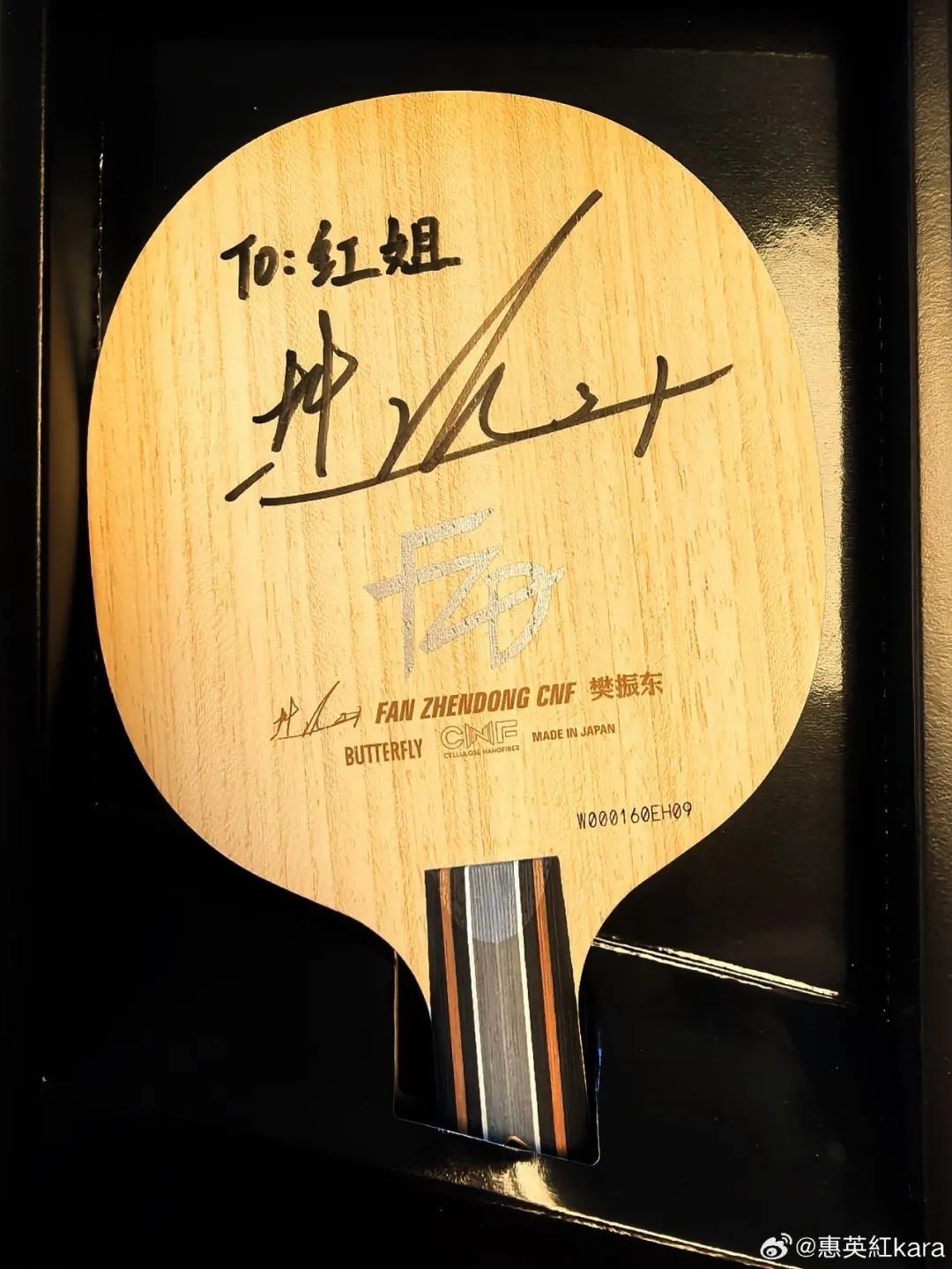 2月5日,65岁演员惠英红晒出樊振东的签名球拍表示感谢,并祝福樊振东和众人。