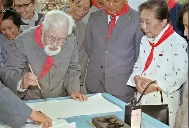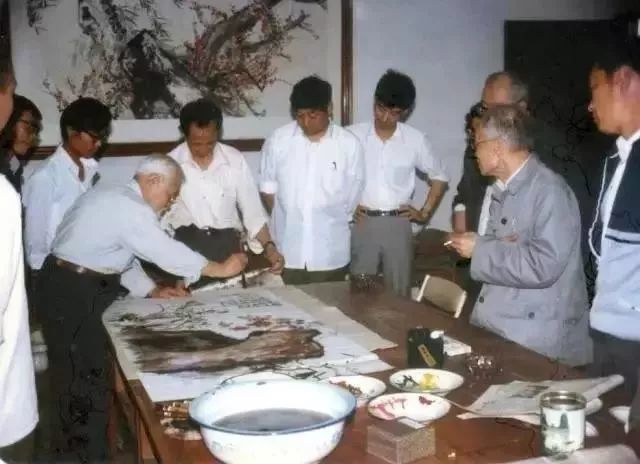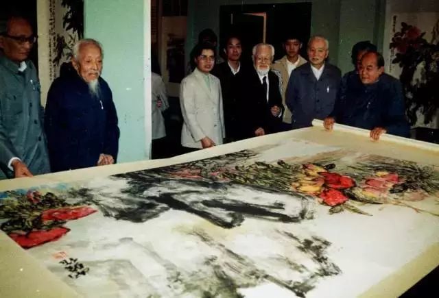 1984年,朱屺瞻先生(前排右三者)向上海博物馆捐赠自己的巨幅画作