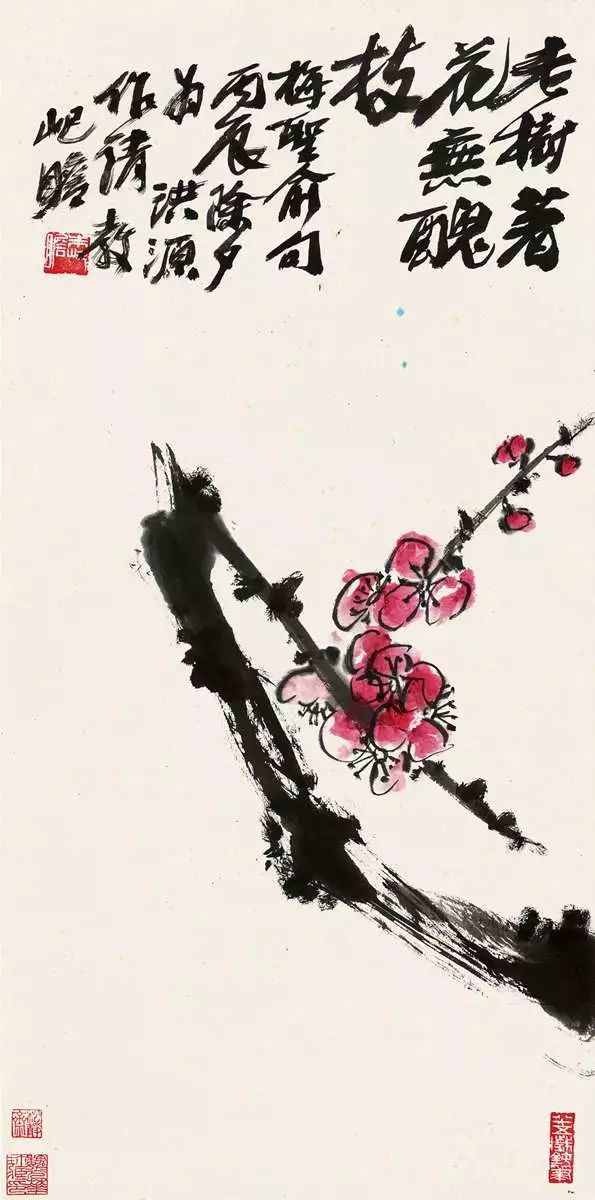 文革十年,朱屺瞻被迫停笔。1978年,朱屺瞻87岁时,被抄的齐白石所刻印章发还,他高兴而作《梅花草堂图》纪念。