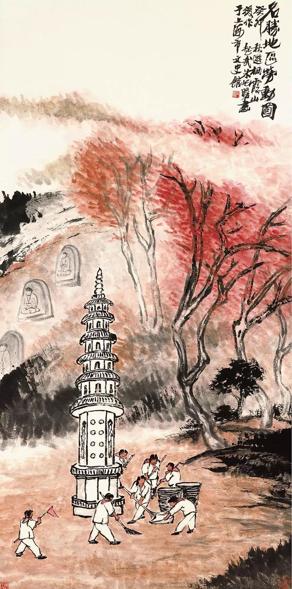 纵然生活不如意,但朱屺瞻美术创作的热情却空前高涨。1953年,他畅游北京,回访齐白石老人,作毛笔写生画数十幅;回上海后作《潇湘烟雨图》并入选全国国画展;1954年加入华东美术家协会,并与刘海粟等同赴黄山写生;1955年被聘为上海文史馆馆员;1956年,65岁的朱屺瞻受聘为上海中国画院画师;1957年,朱屺瞻与钱瘦铁远游川陕,沿途考察,作写生画多幅;1958年,朱屺瞻赴洞庭湖东山、青浦淀山湖等地写生……