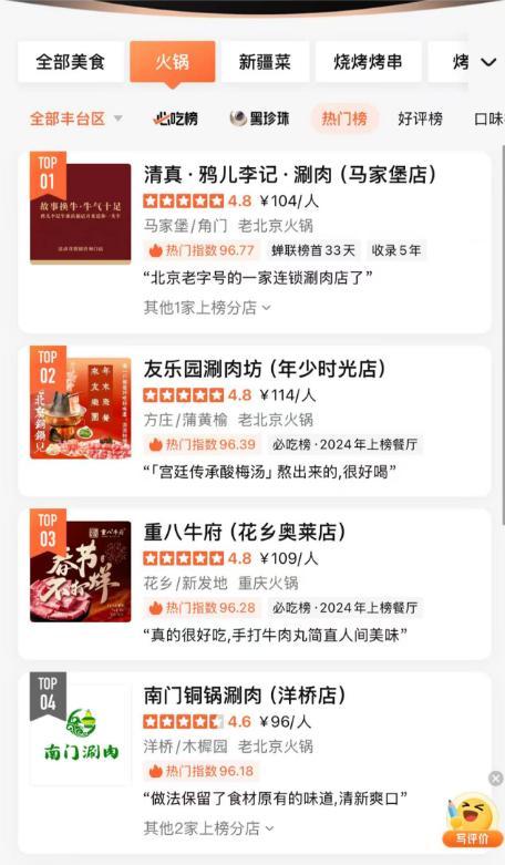 坐标北京,重八牛府创始人杜坤告诉火锅餐见,一个明显的变化是,在春节期间,尤其是老北京火锅受到了很大的欢迎,在大众点评上,位于首列的也基本都是老北京铜锅涮。