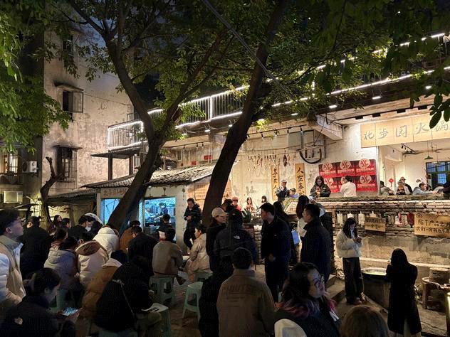 大街上挤满了返乡的年轻人,各大茶饮店门口站满了等待叫号的青春面庞,一些连锁火锅品牌的店外,也坐满了老老少少吃零食喝茶水的顾客。