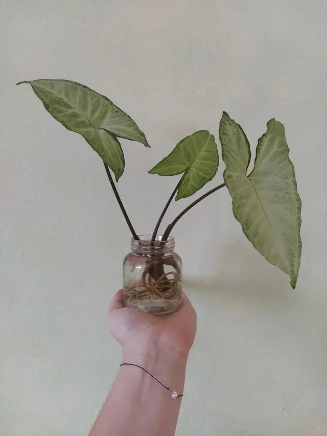 合果芋这种植物本身就比较耐阴、耐涝,在卫生间里养护的时候,最好是用水培的方法来进行,可以准备专用的水培容器,也可以用普通的玻璃瓶,最好是可以看到它的根系生长状况,就是为了清楚看到是否有烂根。