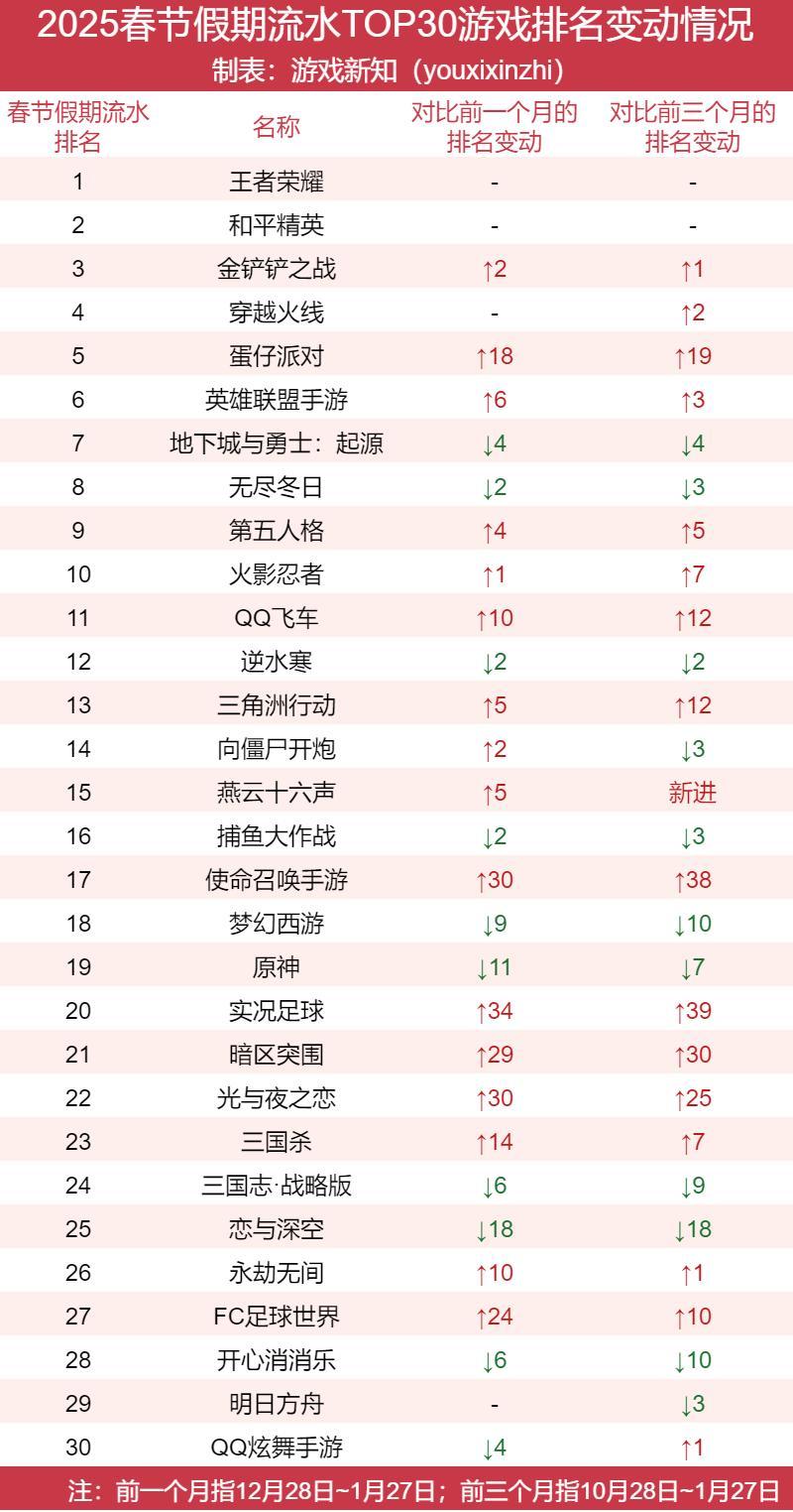 游戏新知整理了春节假期(本文指1月28日除夕~2月4日初七,下同)期间赚了最多钱的100款游戏,以及赚了最多钱的30家厂商(本文指发行方,下同)。今年还真有一些新变化可以讲讲。