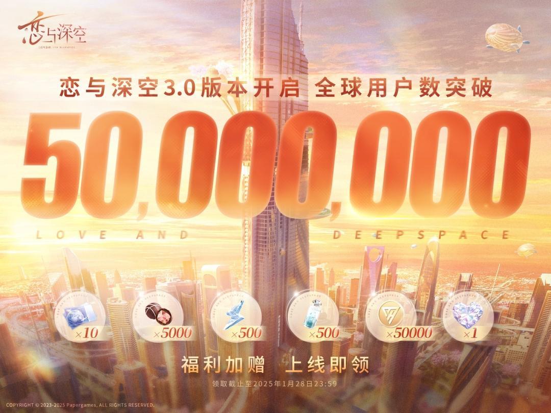 比如女性向品类的头部产品《恋与深空》,将3.0版本「万象遇你」的上线时间定在了1月22日,早于春节假期近一周。游戏拿出了新男主「夏以昼」、新主线、新关卡等大量内容,带动游戏全球用户数突破了5000万。