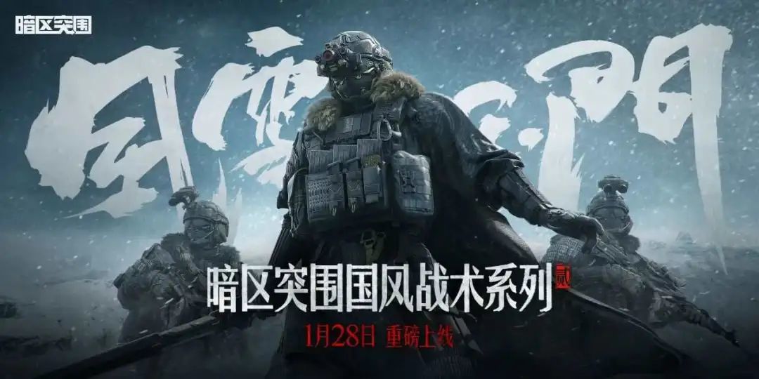 《暗区突围》的打法就比较特别,他们不仅在除夕夜推出了新皮肤「风雪玉门」系列,还推出了「新春大联播」的直播活动。