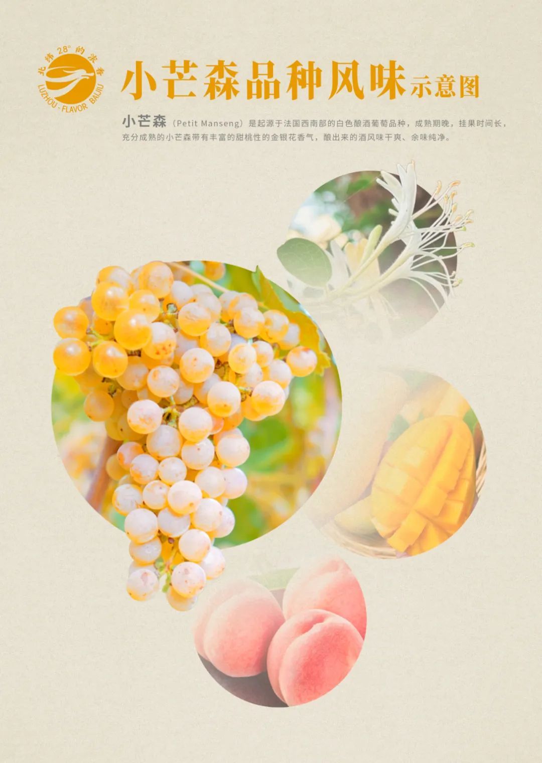 “其中有核果的味道,比如水蜜桃的风味;也会出现热带水果的味道,比如芒果。法国朱朗松产区酿甜白会用到小芒森,但是蓬莱用小芒森酿的酒清新雅致,与其他产区风味不同。”