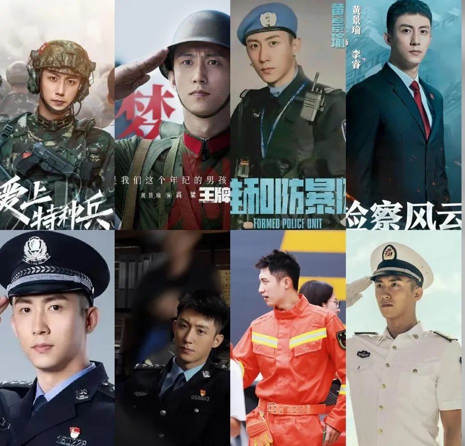 据我不完全统计,黄景瑜已经出演过海军狙击手、缉毒警、特种军官、陆军、刑侦大队副队长、消防员、检察官、维和警察等等……
