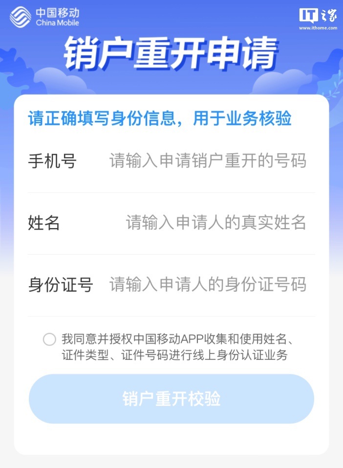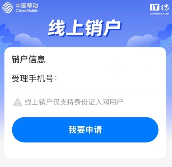 中国移动 App 现已悄悄上线了“线上销户”和“销户重开”功能,用户可以在中国移动 App 中直接搜索“销户”,即可进入相应功能界面申请。
