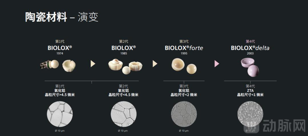 20世纪90年代,复合陶瓷材料的崛起。赛琅泰克推出了氧化铝-氧化锆复合陶瓷材料(Zirconia-Toughened Alumina,简称ZTA)。这种材料结合了氧化铝的低降解敏感性和氧化锆的增韧能力,显著提高了陶瓷关节的强度和抗断裂性能。1994年,赛琅泰克推出了Biolox®forte陶瓷材料,这种材料在临床应用中表现出卓越的耐磨性和生物相容性。