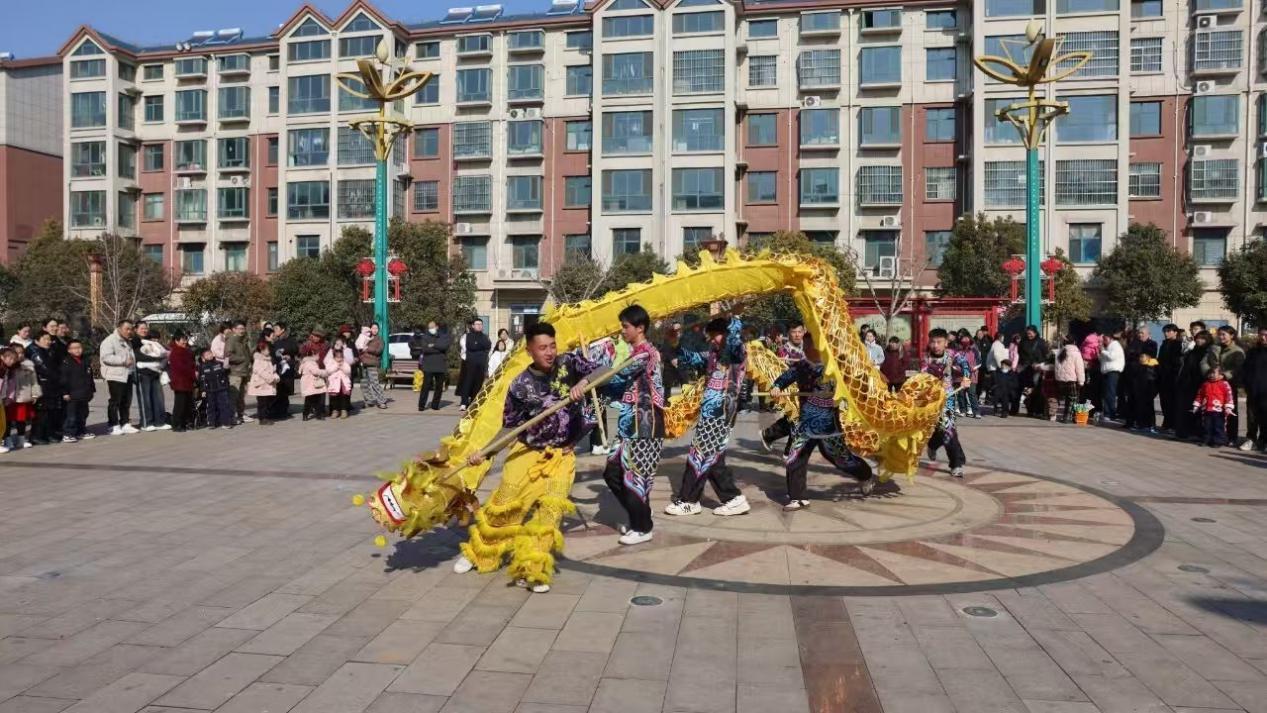 广场上,人头攒动,热闹非凡。伴随着欢快的锣鼓声,舞龙舞狮、变脸表演等闪亮登场。舞龙舞狮队伍精神抖擞,巨龙翻腾,雄狮威武,引得观众阵阵喝彩。