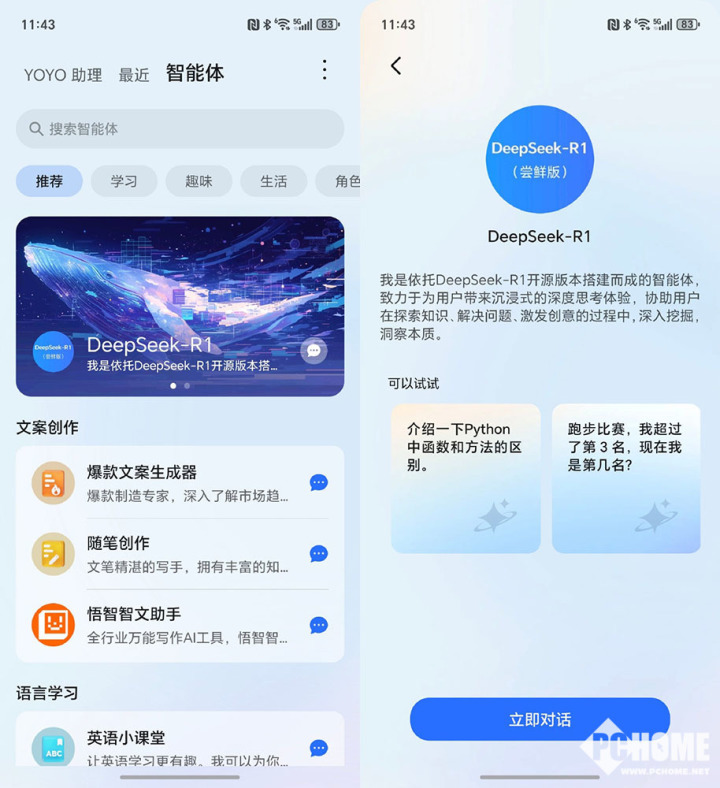 据荣耀方飞透露:荣耀今天上线了DeepSeek,大家现在就可以打开YOYO助理与DeepSeek对话,日常聊天、知识查询、文本创作等,都能得到更精准、更丰富的回应,实现更加无缝的AI体验!
