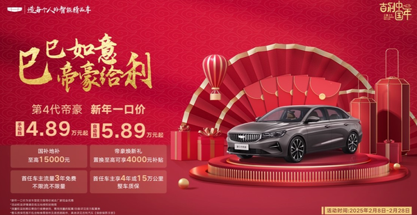 【CNMO科技消息】2月8日,吉利汽车宣布:第4代帝豪自动挡车型一口价5.89万元起,手动挡车型则为4.89万元起,此次活动时间持续至2月28日。此次活动不仅价格诱人,购车用户还可叠加享受多项权益。